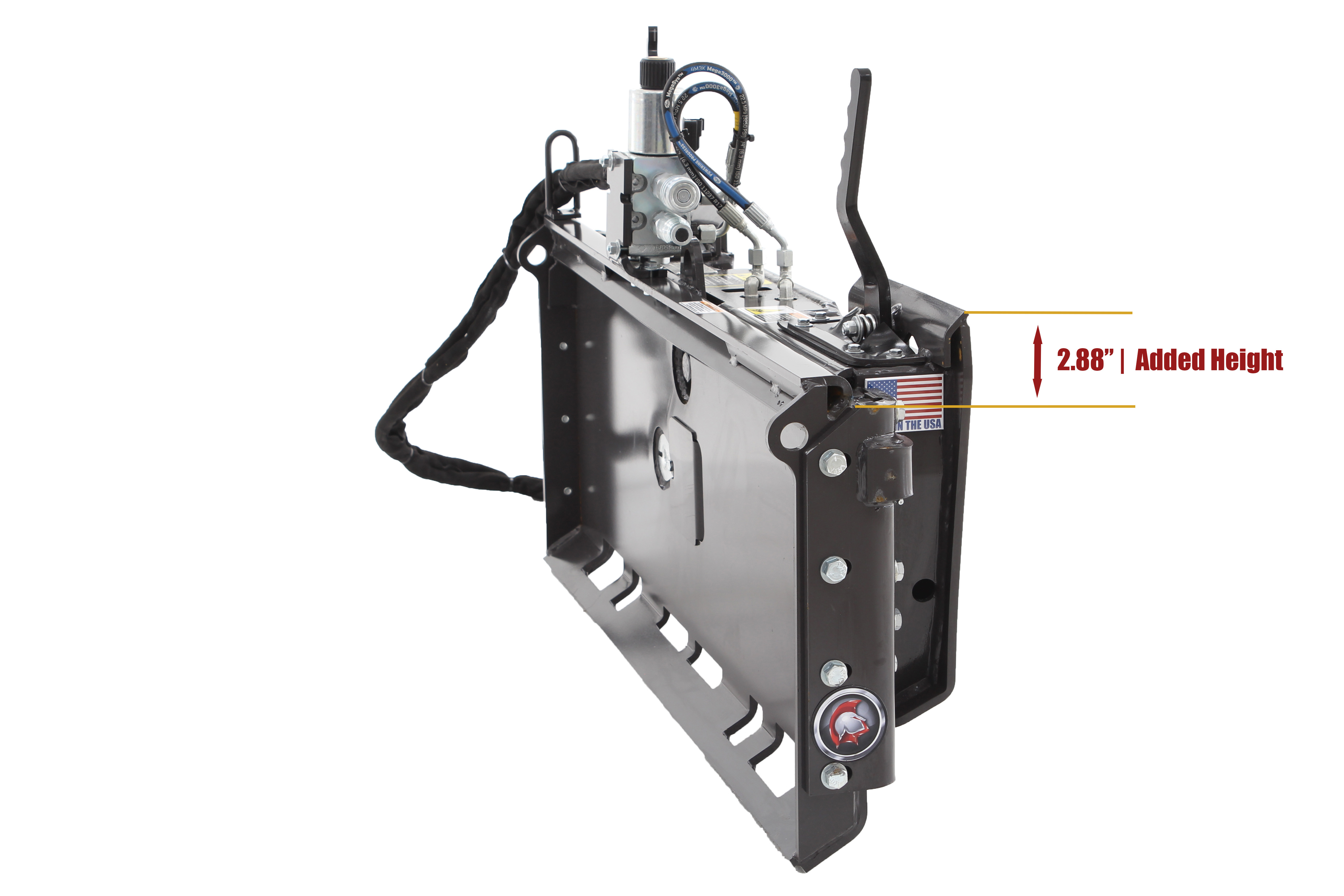 Note: This Tilt Attach Plate adds about 2.88" of added height when hooking up to an attachment. (Picture shows 3rd valve hydraulic kit equipped)